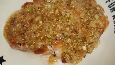 ジューシーなチキンに、ねぎ塩ダレがじゅわっと絡んで最高!香ばしさとシャキシャキねぎの風味が絶妙で、食欲が止まらない一品!