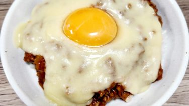 トロ~リ濃厚チーズとスパイス香るキーマの相性が抜群!口に入れた瞬間、チーズのコクが広がり、後からくるキーマの旨みがクセになる一品。