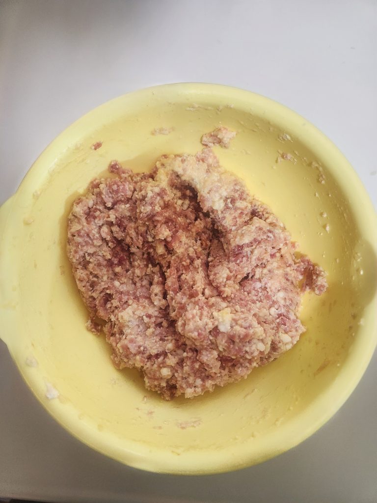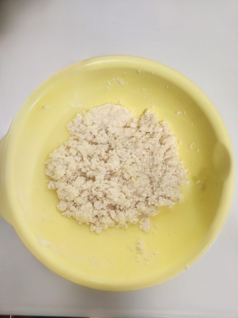 ④ パン粉 (大さじ6)入れさらに混ぜる。