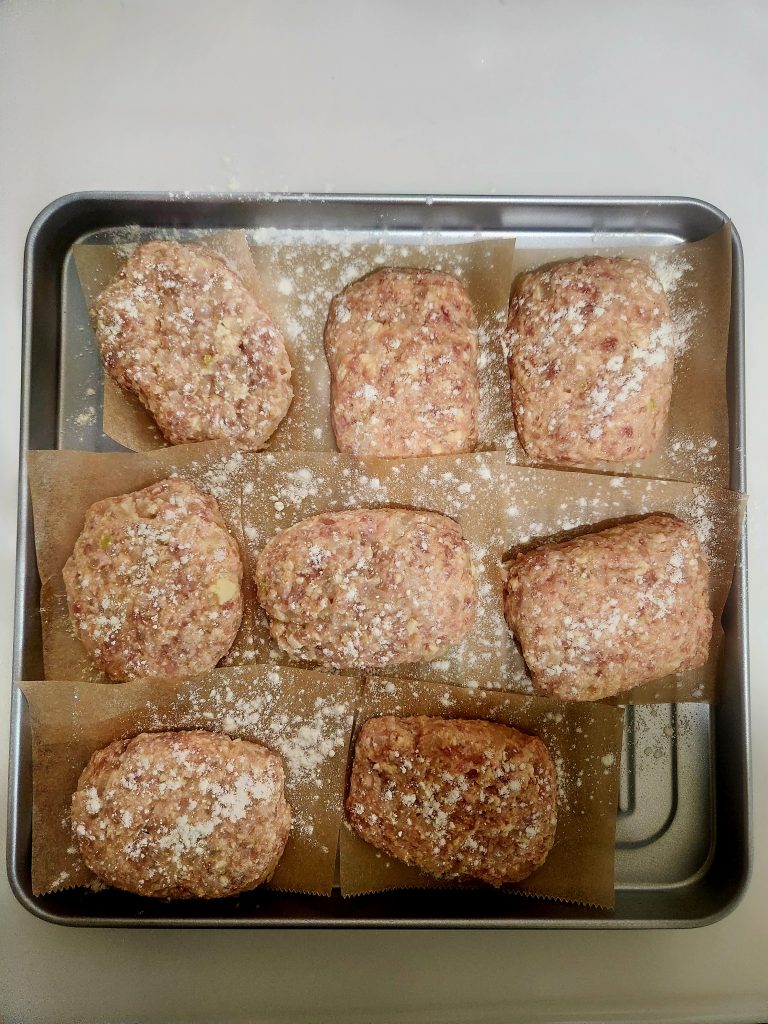 ⑧ 小麦粉を表面にまぶして下処理終わり。