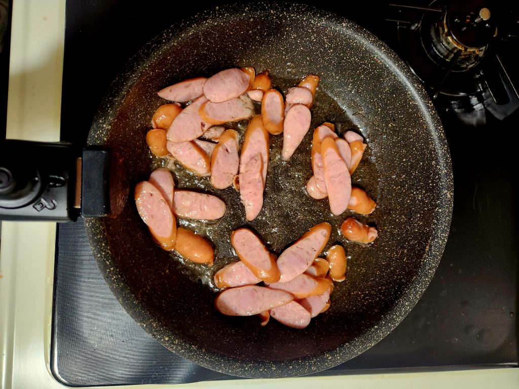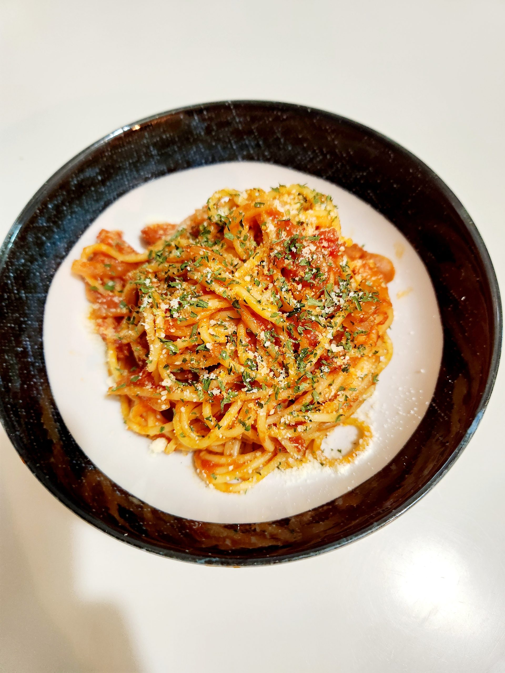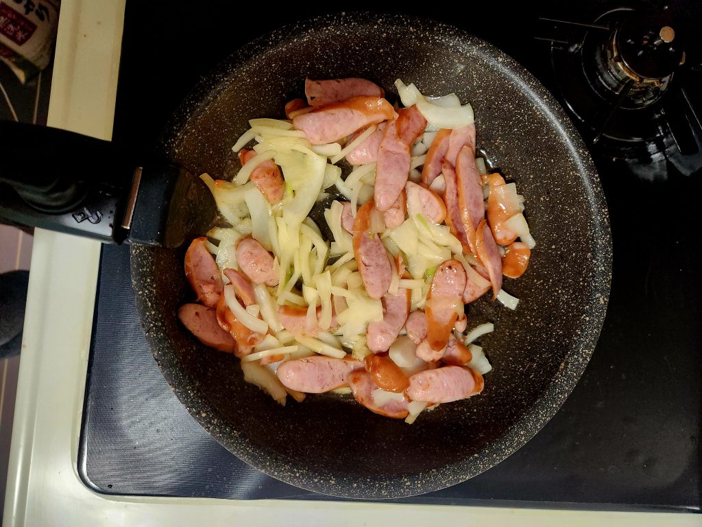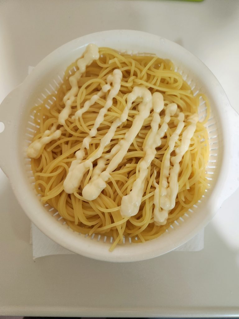 ⑭ 粉チーズをふりかけ混ぜ完成。
