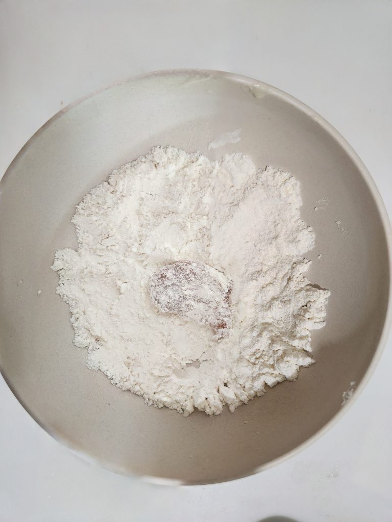 ⑦ 薄力粉をしっかりつける。