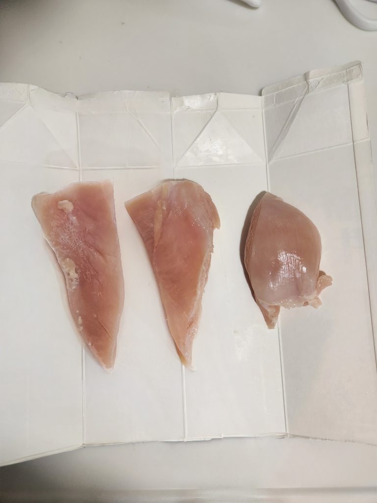 ① 鶏むね肉を3ブロックに切る。