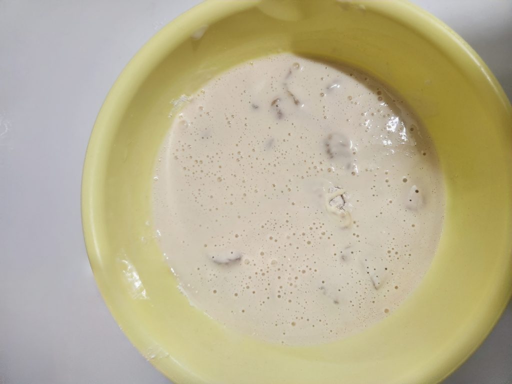 ⑥ 鶏むね肉の漬け込んだ汁を捨て