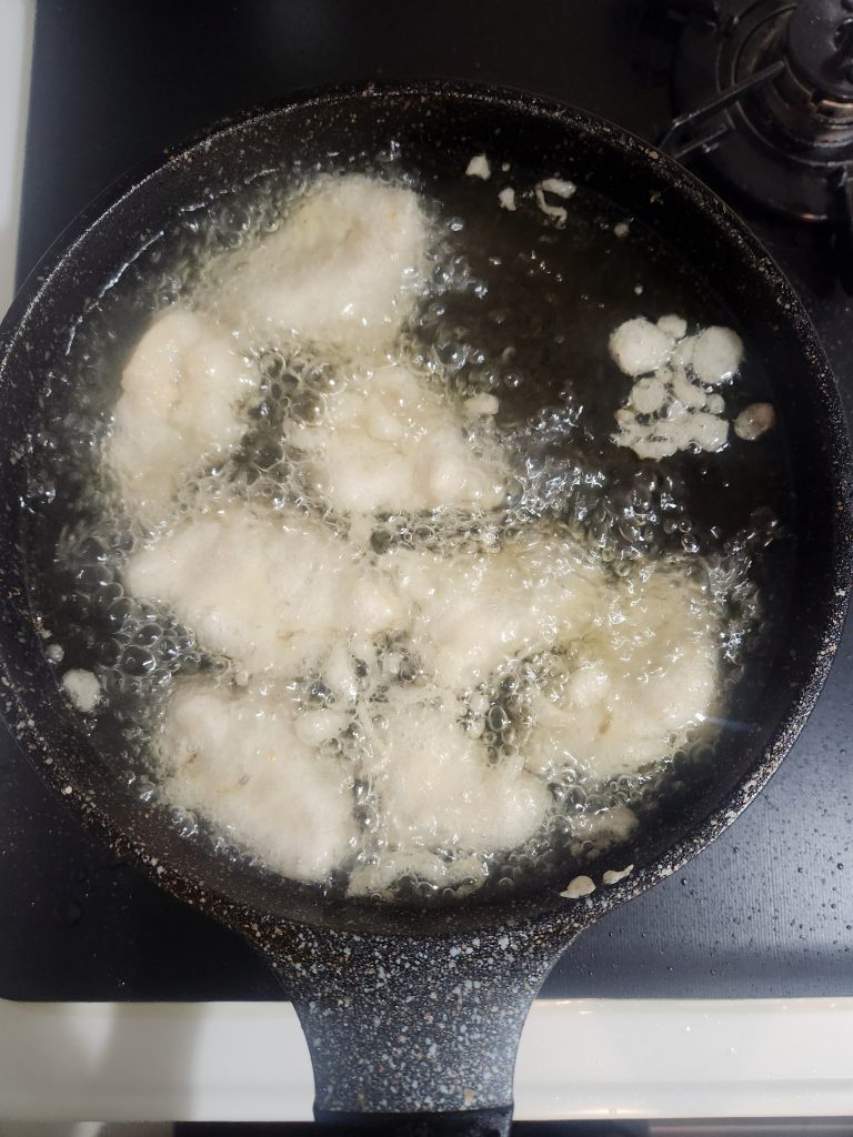 ⑨ 170℃で3分ほど揚げる。