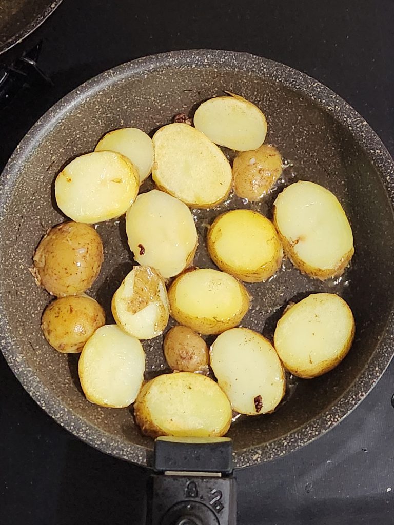 ⑪ じゃがいもに焼き色を付ける。
