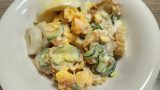 ③ 火を消し醤油 (小さじ1)を入れ絡め