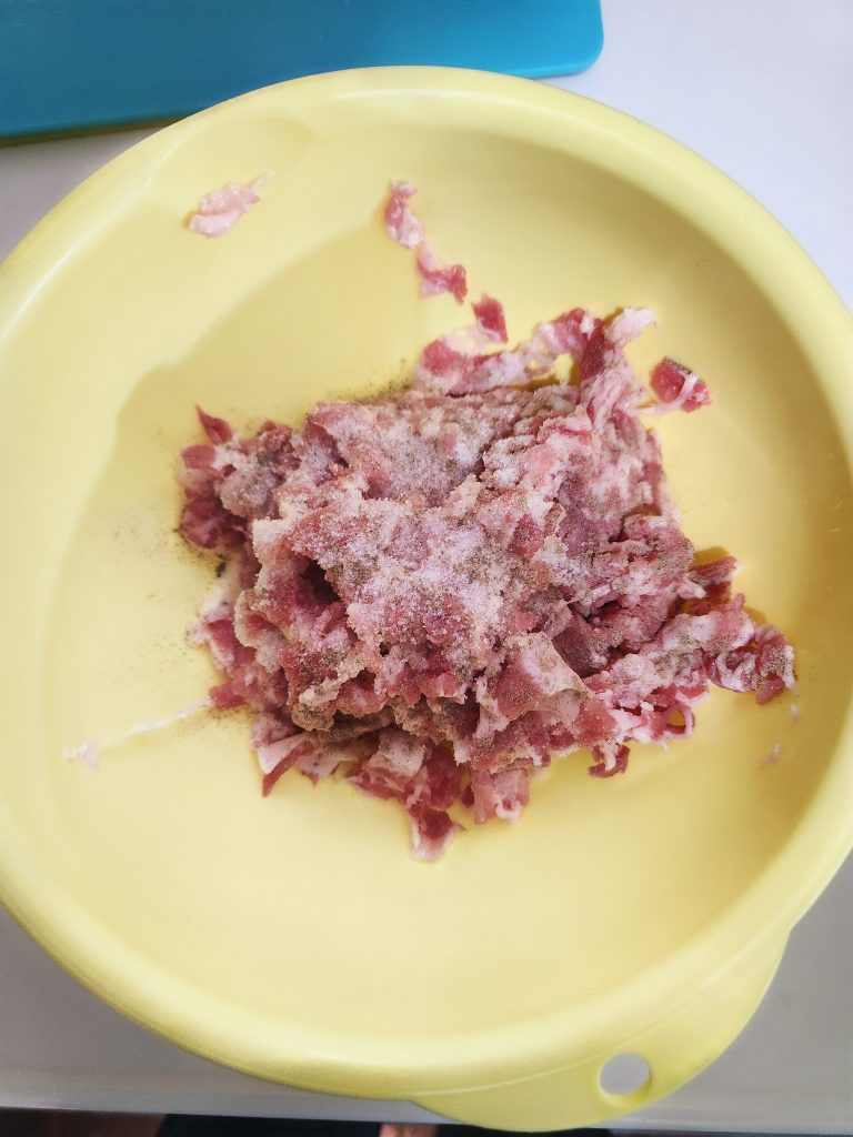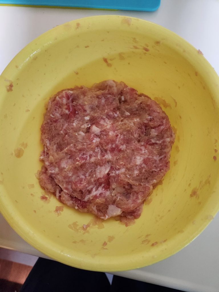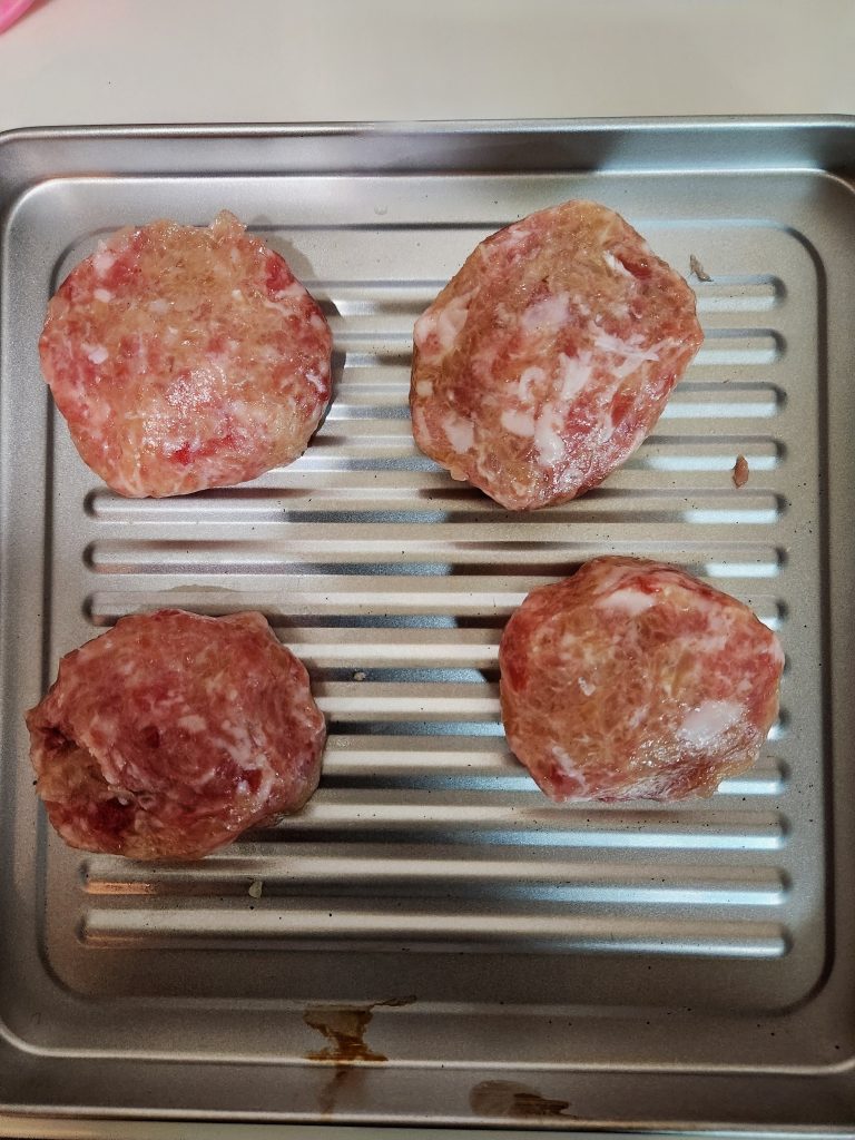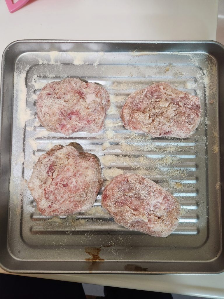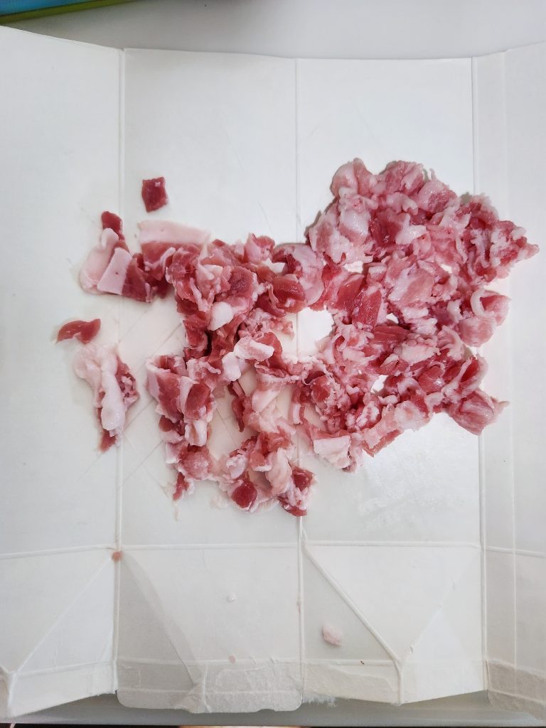 ⑤ ボールに豚ひき肉 , 豚バラスライス