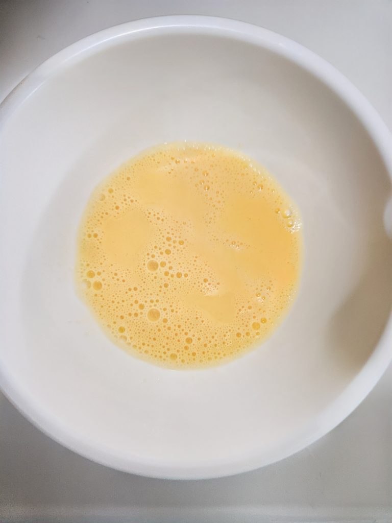 ⑧ ボールに卵 (1個) , 牛乳 (大さじ1半)