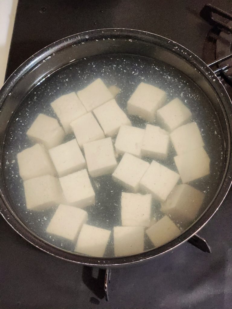 ③ 木綿豆腐を2cm角に切る。