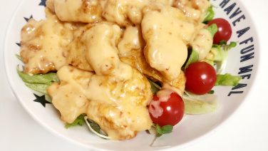 カリッとした皮の食感の後にじんわり広がる辛さがクセになる。豆板醤のコクと鶏の旨味が絶妙にマッチしピリ辛でついつい手が伸びる一品。